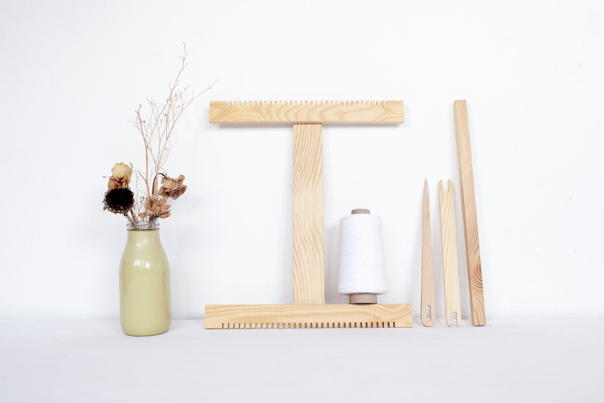 Puedes añadir un bastidor al pack y crear así un kit de telar completo.